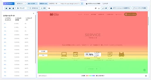 ヒートマップをもとに、どこまで読まれているか、どこで止まっているかをデータで確認します。